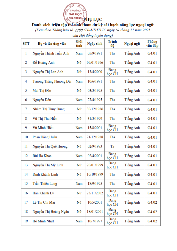 Thông báo tổ chức sát hạch năng lực ngoại ngữ - Kỳ tuyển dụng viên chức năm 2025