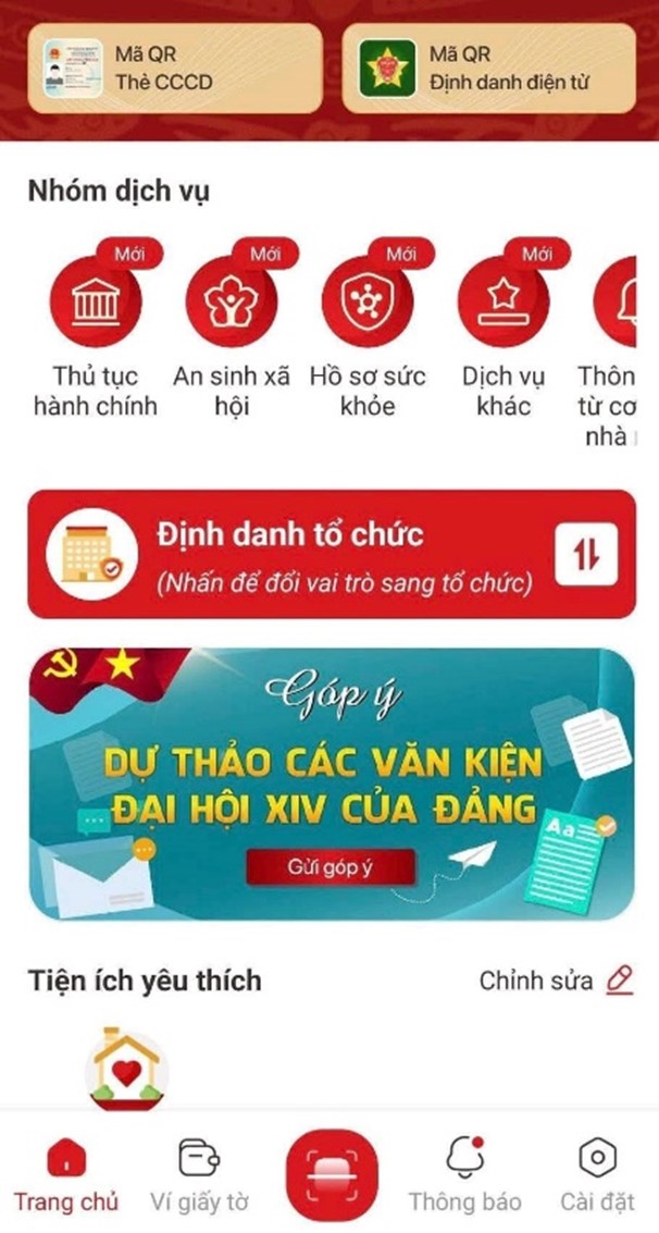 Bước 1: Người dân đăng nhập vào ứng dụng VNeID, tại màn hình trang chủ nhấn vào banner “Góp ý dự thảo văn kiện Đại hội Đảng”.