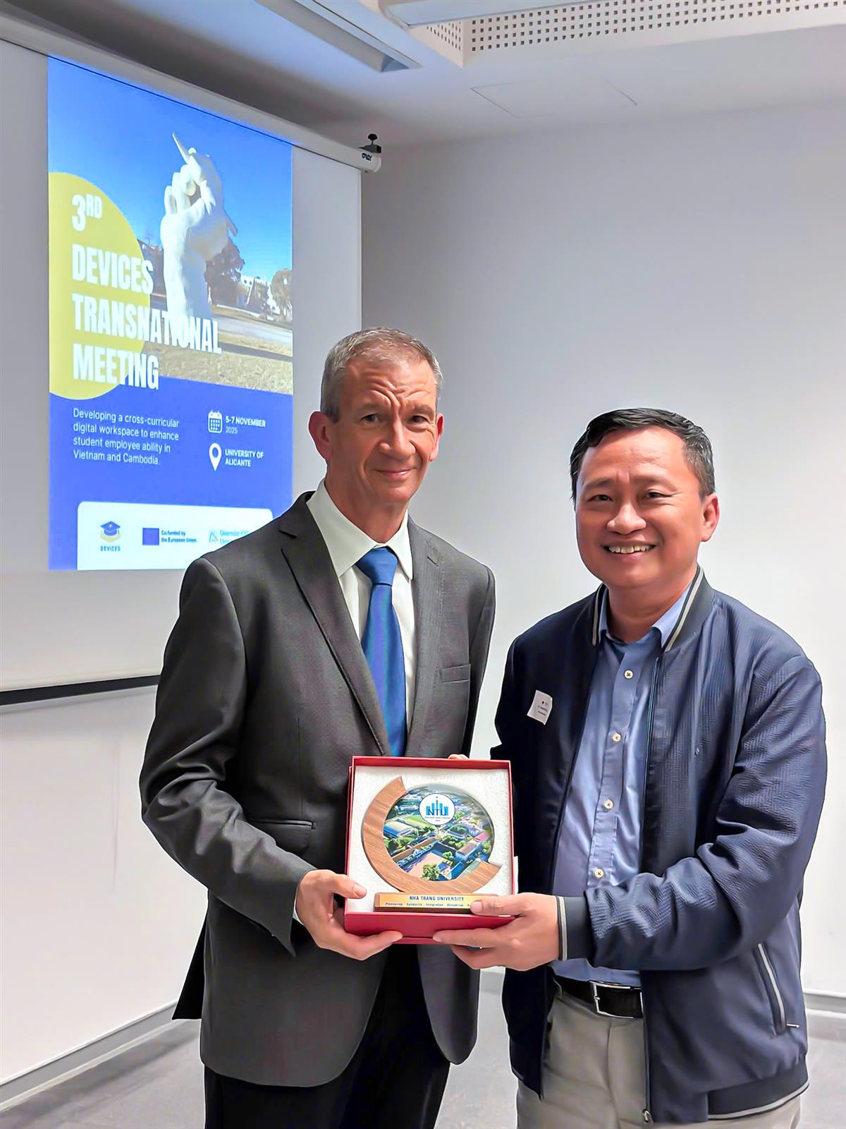 Từ ngày 05 – 08/11/2025, đoàn công tác của Trường Đại học Nha Trang đã tham dự Cuộc họp chuyển giao lần thứ ba (3rd Transnational Meeting) của Dự án DEVICES – Developing Education in Vietnam and Cambodia enhancing Employability for Students – được tổ chức tại Trường Đại học Alicante (University of Alicante), Tây Ban Nha.
