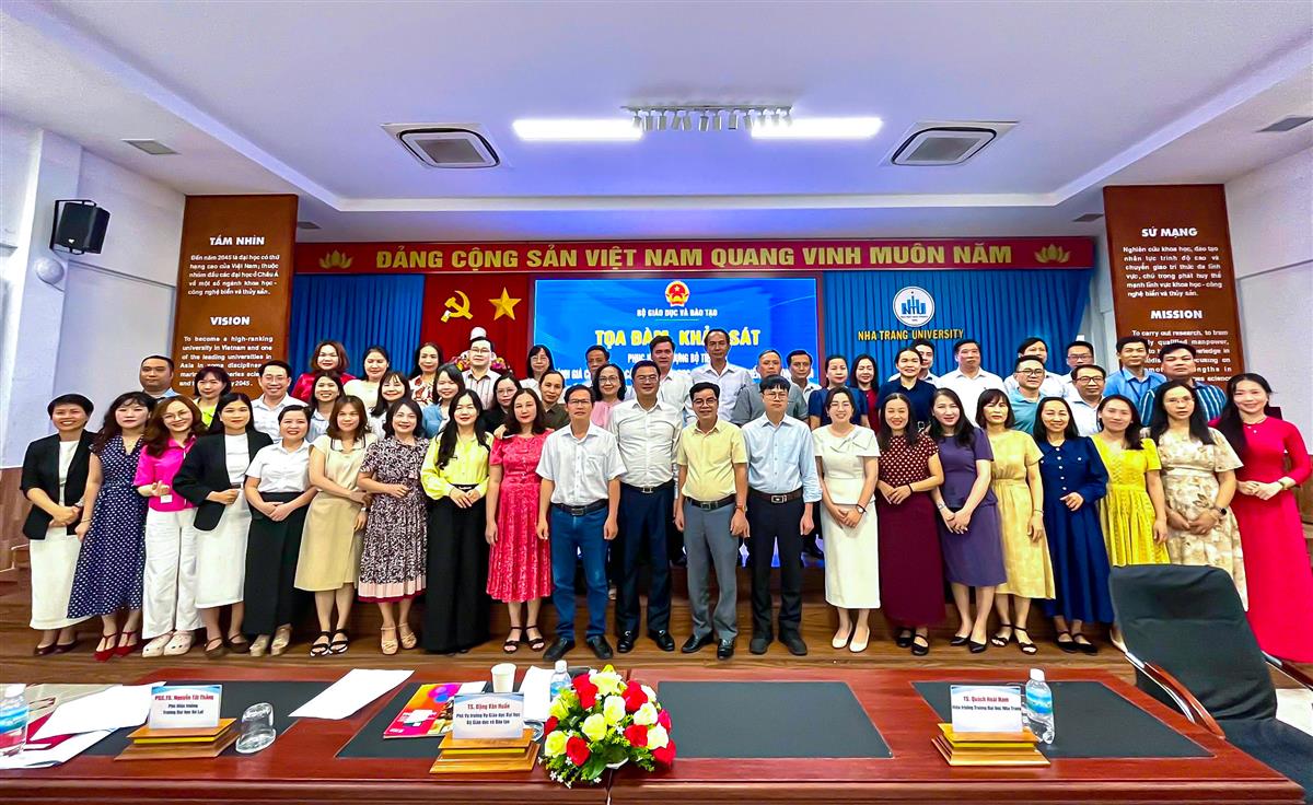 Về phía Trường Đại học Nha Trang có TS. Quách Hoài Nam – Hiệu trưởng Nhà trường, cùng đại diện lãnh đạo các đơn vị, khoa, phòng và giảng viên tham gia chương trình. Bên cạnh đó, chương trình còn có sự tham dự của đại diện hơn 40 cơ sở giáo dục đại học khu vực miền Trung, góp phần trao đổi, chia sẻ kinh nghiệm và đóng góp ý kiến hoàn thiện bộ tiêu chí.