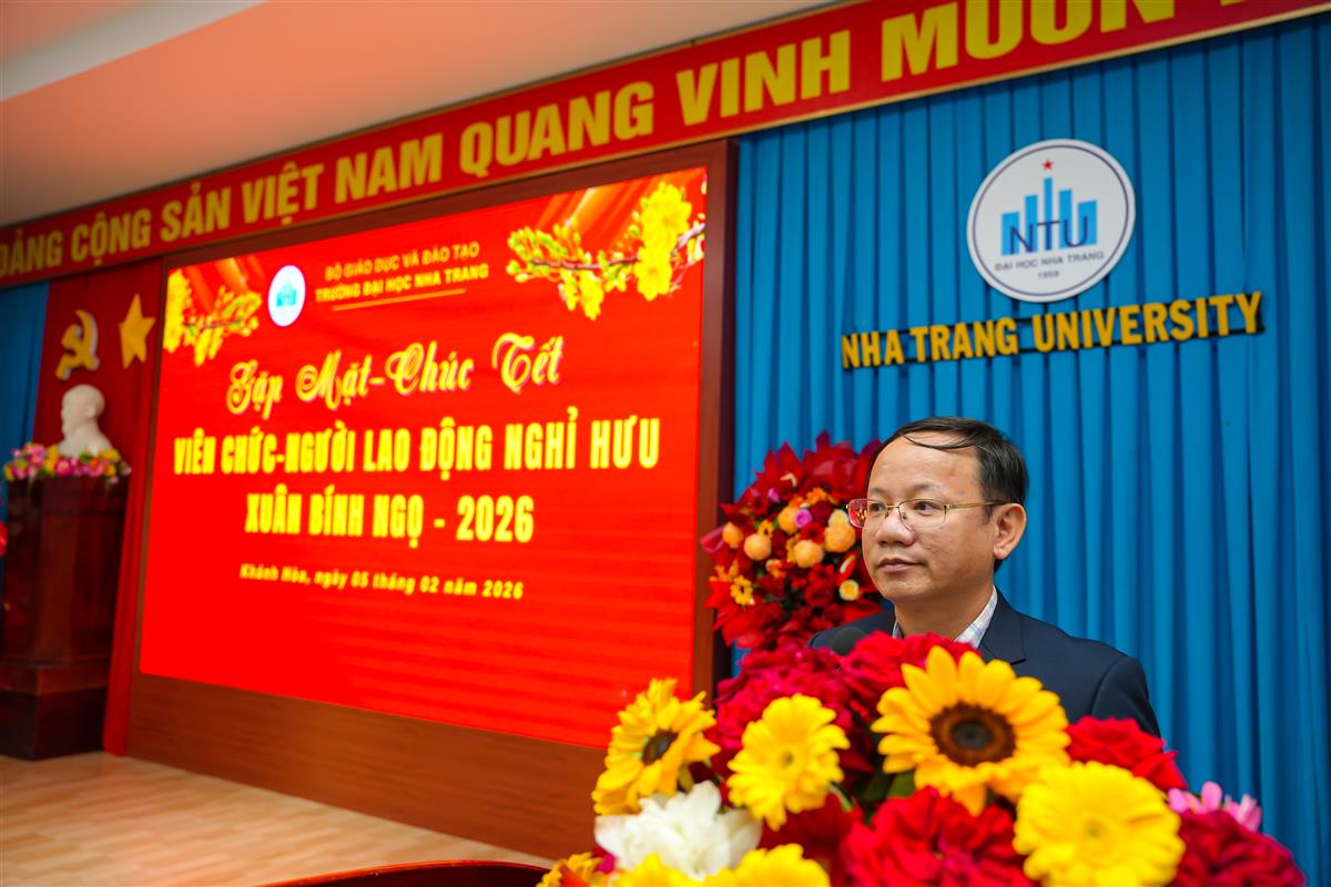 Tại chương trình, TS. Quách Hoài Nam – Hiệu trưởng Trường Đại học Nha Trang đã gửi lời chúc mừng năm mới an khang, hạnh phúc đến toàn thể các thầy cô, cán bộ hưu trí; đồng thời bày tỏ lòng biết ơn sâu sắc trước những đóng góp to lớn của các thế hệ đi trước. Hiệu trưởng nhấn mạnh, những thành tựu mà Trường Đại học Nha Trang đạt được hôm nay là kết tinh từ trí tuệ, tâm huyết và sự cống hiến bền bỉ của nhiều thế hệ cán bộ, giảng viên, người lao động qua các thời kỳ.