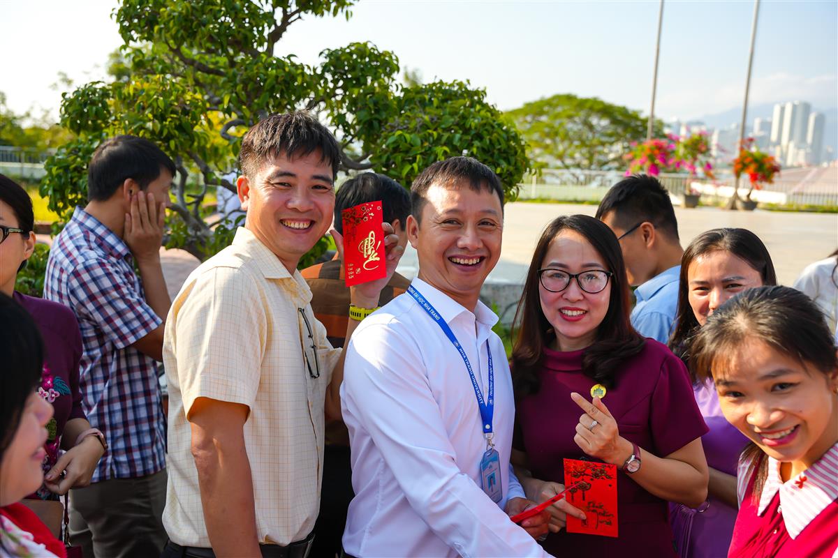 Trong không khí ấm áp đầu xuân, Ban Giám hiệu đã trao những phong bao lì xì may mắn đến cán bộ, viên chức, người lao động như một lời chúc cho một năm mới thuận lợi, hanh thông và nhiều thành công. Những nụ cười rạng rỡ, những cái bắt tay thân tình đã tạo nên bầu không khí phấn khởi, lan tỏa năng lượng tích cực trong ngày làm việc đầu năm.