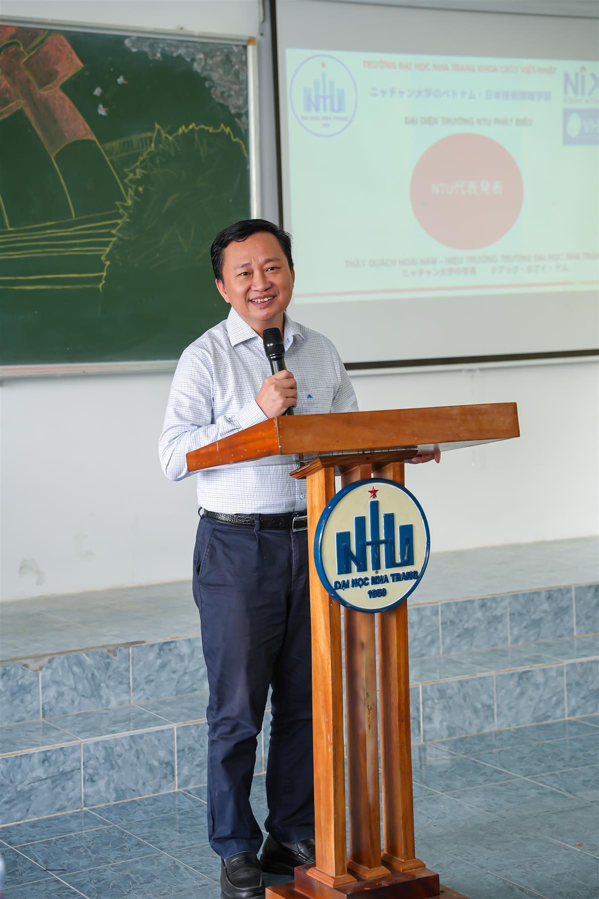 TS. Quách Hoài Nam – Hiệu trưởng Trường Đại học Nha Trang phát biểu tại Lễ khai giảng, nhấn mạnh ý nghĩa của chương trình hợp tác đào tạo gắn với doanh nghiệp và thị trường lao động quốc tế.