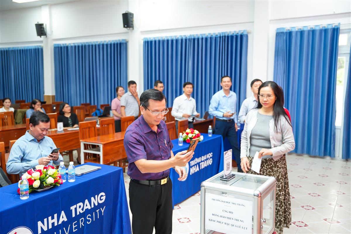 Hưởng ứng lời kêu gọi, các đại biểu, viên chức và người lao động có mặt tại hội trường đã trực tiếp thực hiện quyên góp tại chỗ. Nhiều đơn vị cũng đăng ký tiếp tục triển khai hoạt động vận động nội bộ trong thời gian tới nhằm mở rộng nguồn đóng góp, hỗ trợ thiết thực cho các khu vực chịu ảnh hưởng nặng nề nhất. Đại diện Nhà trường cho biết toàn bộ số tiền quyên góp sẽ được tổng hợp và chuyển đến đúng địa phương, đúng đối tượng, bảo đảm sự công khai và minh bạch.