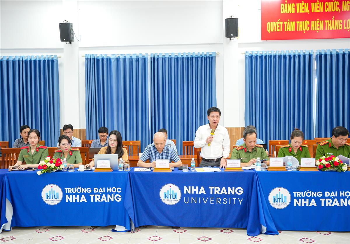 Tại buổi làm việc, đại diện Bộ GD&ĐT và Bộ Công an đã đánh giá cao công tác đảm bảo an ninh, an toàn trường học của Đại học Nha Trang trong thời gian qua. Các đại biểu tập trung trao đổi về thực trạng, những khó khăn trong việc phòng ngừa, xử lý các hành vi vi phạm pháp luật trong môi trường học đường; đồng thời đề xuất nhiều giải pháp tăng cường phối hợp giữa Nhà trường, lực lượng công an và các tổ chức đoàn thể trong việc tuyên truyền, giáo dục ý thức chấp hành pháp luật cho sinh viên.