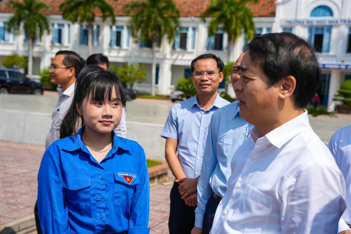 Bí thư Tỉnh ủy Nghiêm Xuân Thành gặp gỡ, trò chuyện và động viên sinh viên Trường Đại học Nha Trang nỗ lực học tập, nghiên cứu.