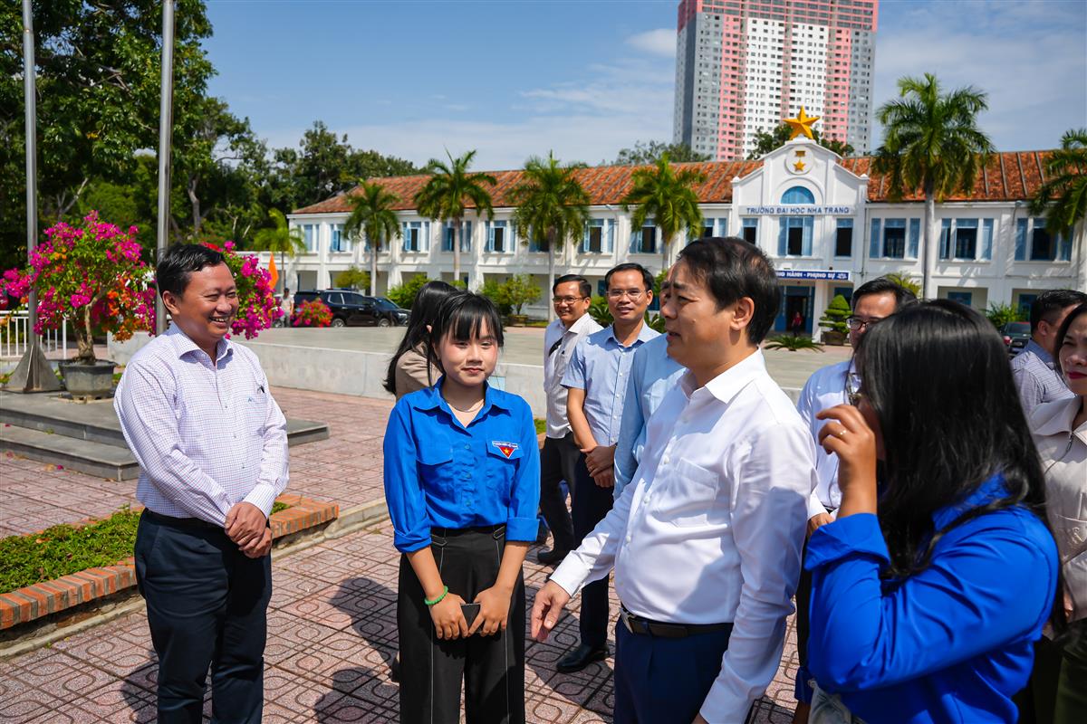 Tại khuôn viên Nhà trường, Bí thư Tỉnh ủy Nghiêm Xuân Thành đã gặp gỡ, trò chuyện thân mật với sinh viên. Đồng chí ân cần thăm hỏi về điều kiện học tập, sinh hoạt, đồng thời khích lệ sinh viên nỗ lực học tập, rèn luyện kỹ năng và phát huy tinh thần sáng tạo trong học tập, nghiên cứu khoa học. Bí thư Tỉnh ủy cũng bày tỏ mong muốn sinh viên Trường Đại học Nha Trang tiếp tục phát huy truyền thống hiếu học, tích cực đóng góp trí tuệ, sức trẻ cho sự phát triển của tỉnh Khánh Hòa và đất nước.