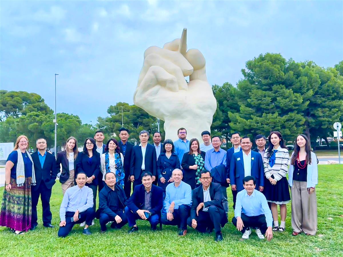 Các thành viên dự họp chụp hình lưu niệm tại tháp bút của ĐH Alicante.
