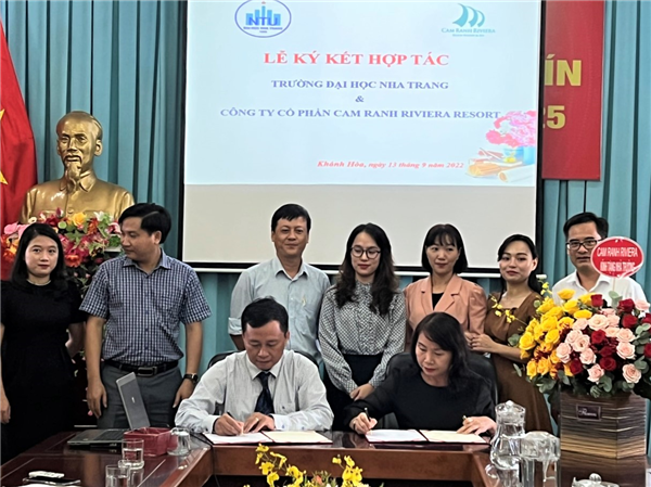 Ngày 13/09/2022, Trường ĐH Nha Trang đã tổ chức lễ ký kết biên bản ghi nhớ thỏa thuận hợp tác với Công ty Cổ phần Cam Ranh Riviera Resort.