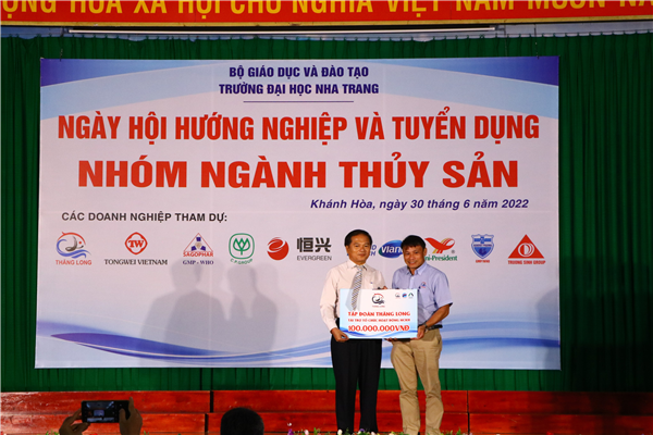 Nhân dịp này, các doanh nghiệp đã trao tặng học bổng khuyến khích học tập cho sinh viên Nhà trường, và trao tặng học bổng cho Quỹ khuyến học của Viện Nuôi trồng Thủy sản.