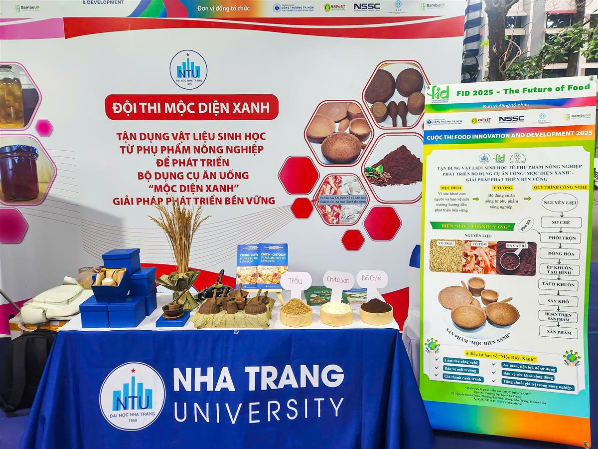 Gian hàng trưng bày sản phẩm của nhóm sinh viên Khoa Công nghệ Thực phẩm, Trường Đại học Nha Trang tại cuộc thi FID 2025.