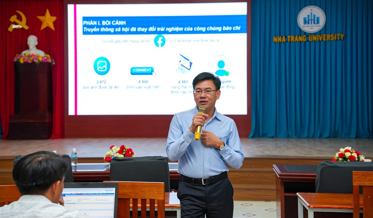 Phát biểu tại chương trình, ThS. Phạm Ngọc Bích – Chánh Văn phòng Trường Đại học Nha Trang nhấn mạnh, trong xu thế phát triển mạnh mẽ của truyền thông số, việc nâng cao kỹ năng làm nội dung cho đội ngũ cán bộ là yêu cầu cấp thiết. Lớp tập huấn không chỉ trang bị kiến thức, kỹ năng thực hành mà còn góp phần chuẩn hóa quy trình vận hành các kênh thông tin của Nhà trường theo hướng chuyên nghiệp, hiện đại, phục vụ hiệu quả công tác truyền thông và quảng bá hình ảnh.
