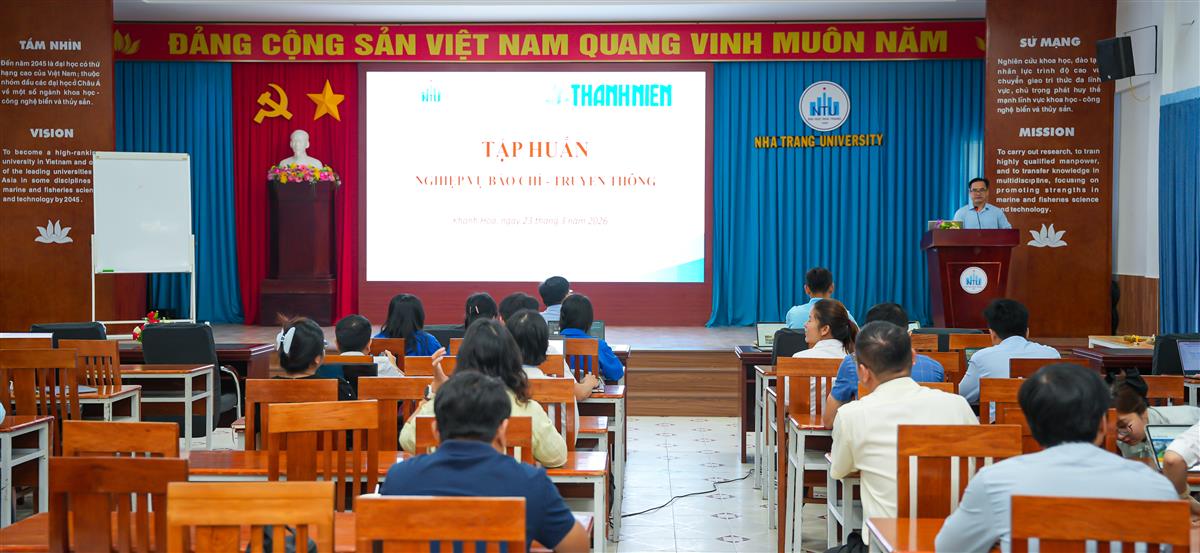 Ngày 23/3/2026, Trường Đại học Nha Trang phối hợp với Báo Thanh Niên tổ chức lớp tập huấn nghiệp vụ truyền thông dành cho Ban Biên tập website và cộng tác viên truyền thông. Hoạt động thu hút hơn 50 cán bộ, viên chức đến từ các khoa, phòng, trung tâm và tổ chức đoàn thể, góp phần nâng cao năng lực sản xuất nội dung trong bối cảnh chuyển đổi số giáo dục đại học.