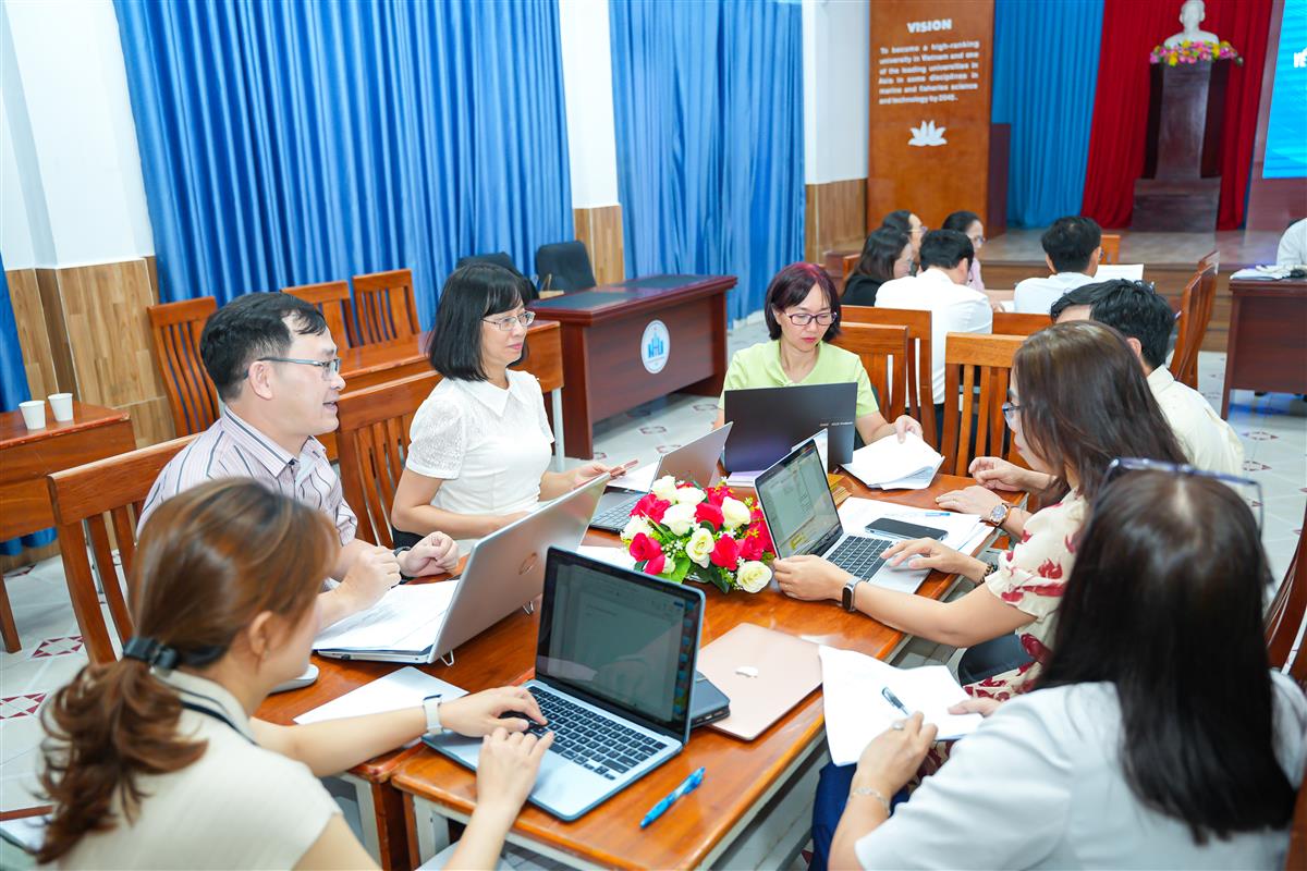 Buổi chiều là phiên tọa đàm, thảo luận và góp ý cho dự thảo Bộ tiêu chí đánh giá chất lượng, với các nội dung xoay quanh môi trường ngôn ngữ, chương trình đào tạo, học liệu, chuyển đổi số, đội ngũ giảng viên, hợp tác quốc tế và các dịch vụ hỗ trợ học tập bằng tiếng Anh.
