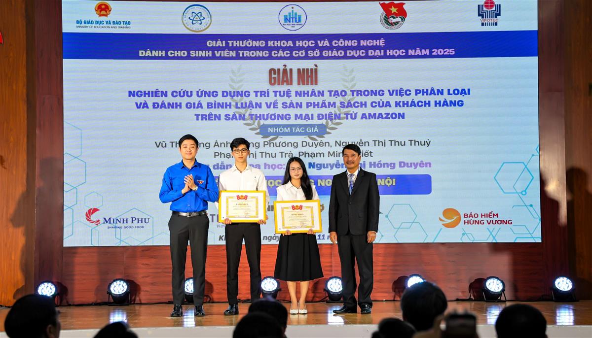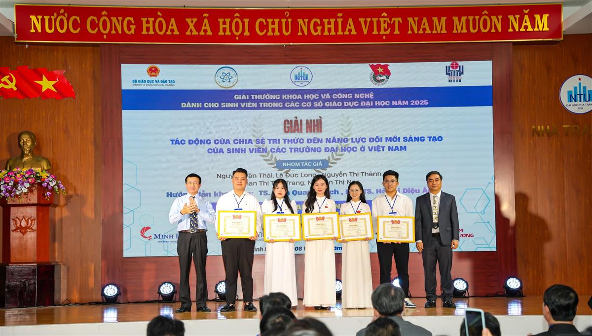 Năm nay, Ban tổ chức đã trao 20 giải Nhất, 105 giải Nhì, 153 giải Ba và 252 giải Khuyến khích cho các công trình tiêu biểu. Trường Đại học Nha Trang vinh dự có một đề tài đạt giải Nhất do TS. Trần Văn Dũng – giảng viên hướng dẫn, cùng nhóm sinh viên Viện Nuôi trồng Thủy sản – Trường Đại học Nha Trang đã xuất sắc đạt Giải Nhất với đề tài: “Đánh giá tác động màu sắc bể lên kết quả ương nuôi ấu trùng và giống cá khoang cổ đỏ (Amphiprion frenatus Brevoort, 1856)”, góp phần khẳng định năng lực nghiên cứu, sáng tạo của sinh viên nhà trường trong lĩnh vực khoa học – công nghệ, đồng thời lan tỏa tinh thần đam mê nghiên cứu trong sinh viên cả nước.