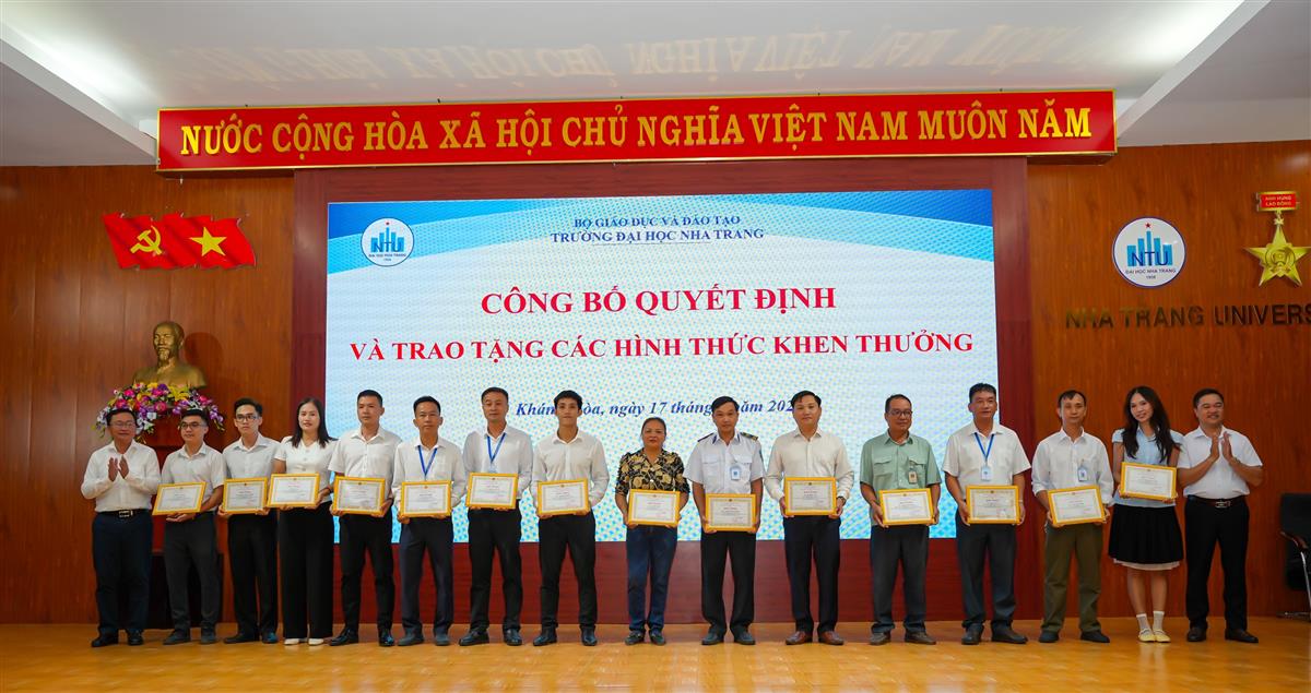 Lãnh đạo Trường Đại học Nha Trang trao giấy khen cho các cá nhân có thành tích xuất sắc trong các hoạt động phong trào và chuyên môn.