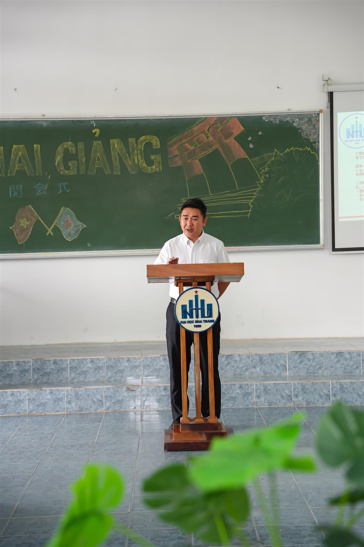 TS. Quách Hoài Nam – Hiệu trưởng Trường Đại học Nha Trang phát biểu tại Lễ khai giảng, nhấn mạnh ý nghĩa của chương trình hợp tác đào tạo gắn với doanh nghiệp và thị trường lao động quốc tế.