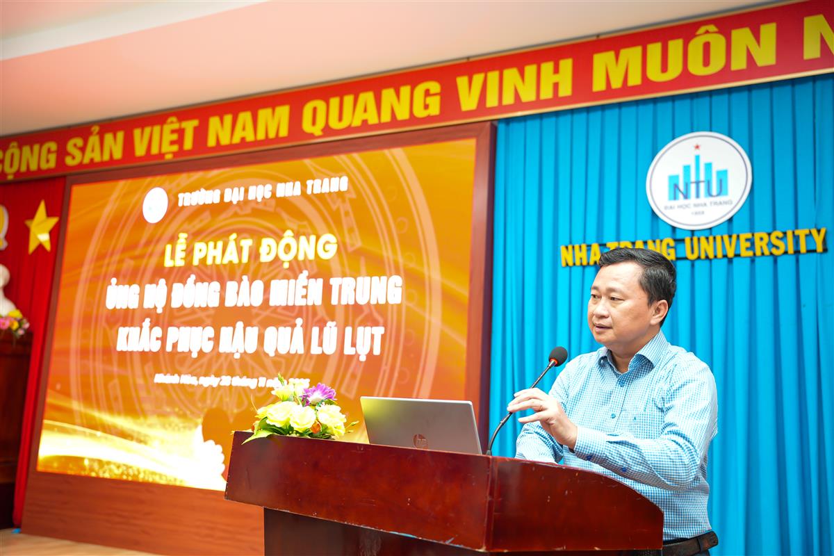 Phát biểu tại lễ phát động, TS. Quách Hoài Nam – Hiệu trưởng Nhà trường, bày tỏ sự cảm thông sâu sắc trước những mất mát mà người dân miền Trung đang phải gánh chịu do mưa lũ liên tục trong thời gian gần đây. Hiệu trưởng nhấn mạnh, tinh thần tương thân tương ái luôn là một trong những giá trị cốt lõi được Trường Đại học Nha Trang gìn giữ và lan tỏa, đặc biệt mỗi khi đồng bào cả nước gặp khó khăn. Hiệu trưởng kêu gọi toàn thể viên chức, người lao động và người học chung tay đóng góp, thể hiện trách nhiệm xã hội của tập thể Nhà trường đối với cộng đồng.